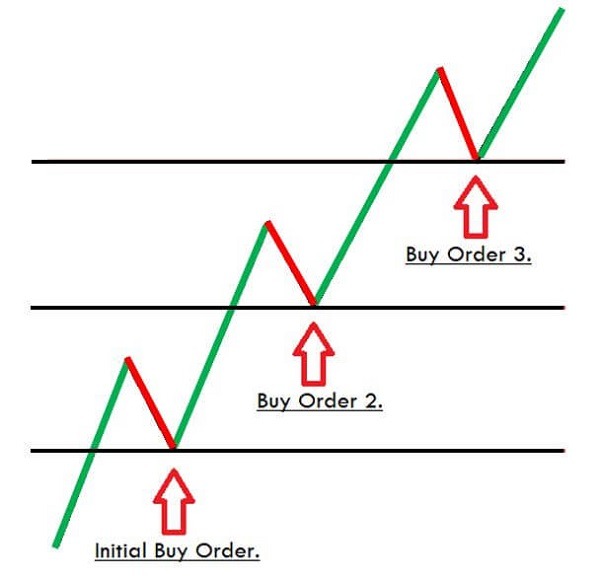 - Cách làm: Bạn mua một phần nhỏ để “thăm dò”. Nếu giá tăng đúng như dự đoán và xác nhận xu hướng tăng, bạn mới tiếp tục nhồi thêm vốn.