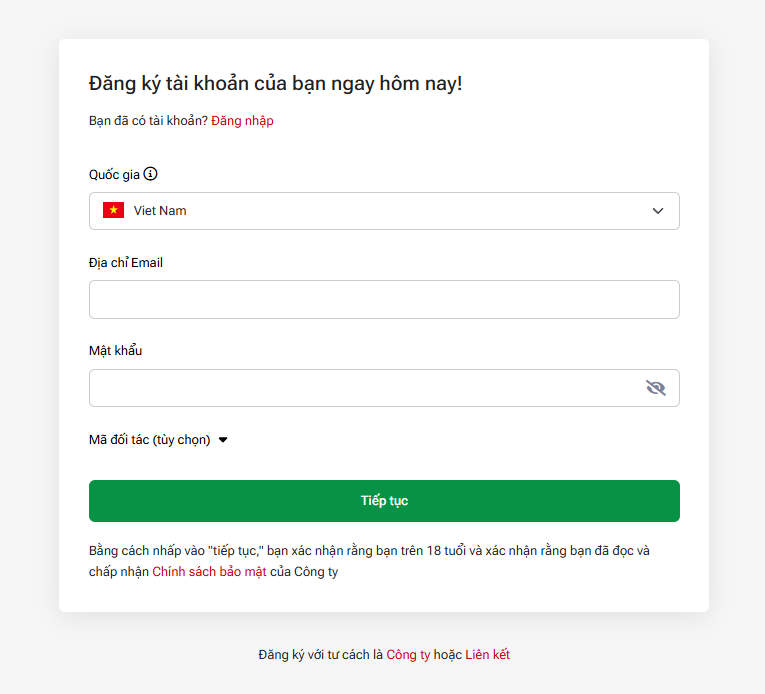 - Email: Nhập email bạn dùng để mở tài khoản.