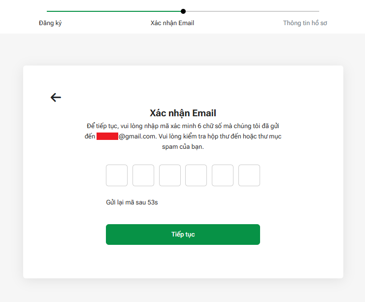 Sau đó nhấn “Tiếp tục”. Một email xác nhận sẽ được gửi đến bạn ngay sau đó.