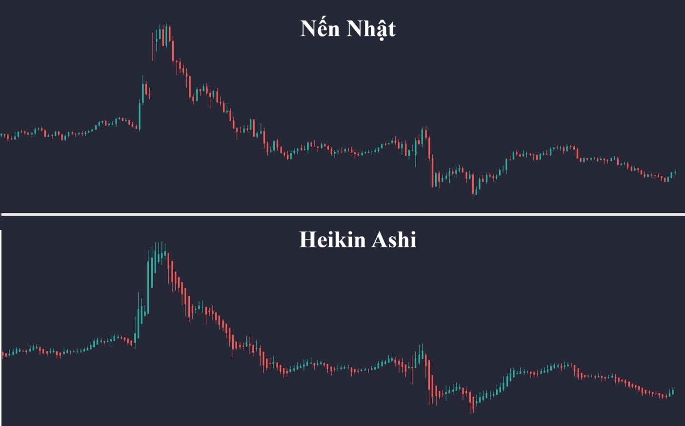 Khác với nến thông thường, nơi mỗi cây nến đại diện chính xác cho giá mở cửa, cao nhất, thấp nhất và đóng cửa của phiên đó, nến Heikin Ashi sử dụng dữ liệu trung bình từ cây nến trước để làm mượt chuyển động giá. Nhờ đó, các chuỗi nến cùng màu thường kéo dài hơn và ít xuất hiện đảo chiều giả.