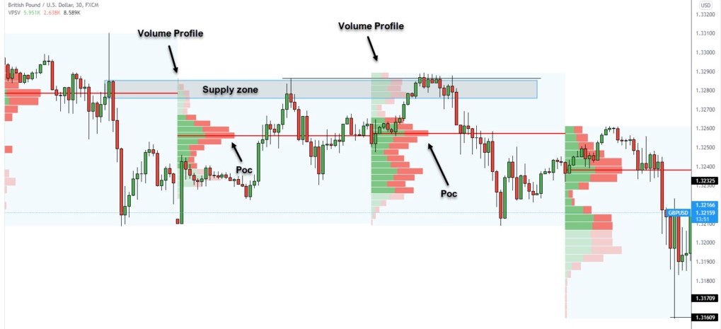 - Tín hiệu bán: Khi giá tiếp cận POC từ phía trên và quay đầu xuống, vào lệnh bán.